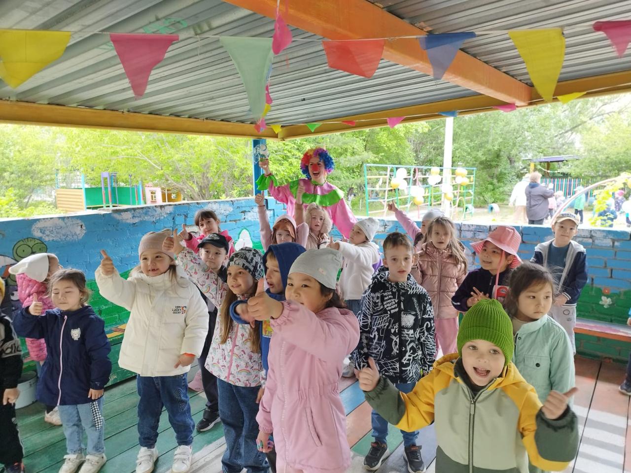Біздің балабақшада балалық шақтың басты мерекесі қуанышты, жылы және әсем өтті. Барлық мұғалімдер бұл мерекені балалардың есінде ұзақ сақтауға тырысты. Біз осы күні мерекелік атмосфераны құруға және балаларды көңілді ойындармен, әндермен, билермен қуантуға тырыстық. Мереке мерекелік көңіл - күй сыйлайтын көңілді айқай ойынынан басталды. Сайқымазақ балаларға қонаққа келді. Тәрбиеленушілер қонақтармен бірге ойындарға қатысып, станцияларда жүрді. Мереке би билеумен және асфальтта қарындаштармен сурет салумен аяқталды.