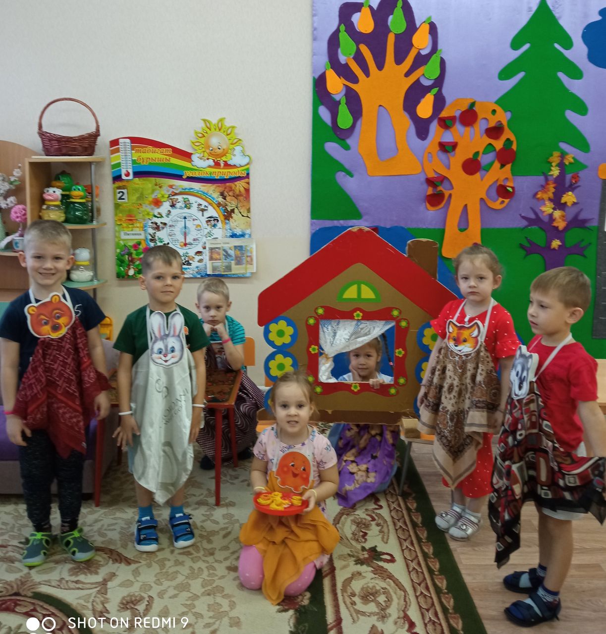 «Сказка» ересек тобының тәрбиеленушілері ойдан шығаруды, импровизацияны, қойылымды жақсы көреді. Тәрбиеші Алла Николаевна драмаландыру ойындарын күннің екінші жартысында ұйымдастырады. Осы аптада «Бауырсақ» ертегісінің мазмұны есте қалды. Мазмұны бойынша әңгімелесті. Балалар ертегі әрқашан жақсылықтың жамандықты жеңетіндігімен аяқталады ма деп ойлады. Бәрне сүйікті Бауырсақтың қысқа, бірақ жарқын өмірі айлакер түлкімен кездескенде қайғылы түрде үзілді. Балалар ертегінің жаңа ұшын ойлап тауып, Бауырсаққа өмір сыйлауды шешті. Сондай-ақ, олар ертегінің жалғасын жазды және үстел театрын пайдаланып жеңді. Балалар «Диктофон» ойынын ойнағанды ұнатады - тәрбиеші балаларға кейіпкердің айтқанын қайталауды ұсынды (қатты – ақырын, бүкіл дауыспен, баяу, буындармен). Режиссерлік ойындар белсенді қолданылады, онда кейіпкерлер-қуыршақтар мен басқа ойыншықтар, ал бала оларды әрекет етуге және сөйлеуге мәжбүр етеді. Бұл оның мінез-құлқын реттеу, сөздері туралы ойлау, қозғалыстарын тежеу қабілетін талап етеді. Әр баланың сөйлеуі, яғни өзара әрекеттесуі, яғни қызықты болуы өте маңызды.