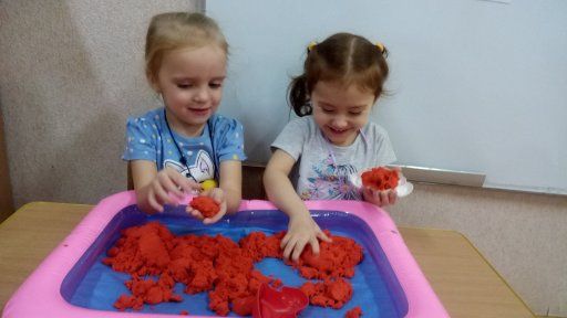 «Капелька» кезекші тобының тәрбиешісі Елена Александровна құммен ойындар ұйымдастырады, балаларға әртүрлі сюжеттер ойлап табуға, оларды құм фигураларына немесе құмдағы суреттерге айналдыруға көмектеседі. Балалар құмды қолдарымен сұрыптауға, құлыптар салуға, тоннелдер қазуға немесе «торттарды» мүсіндеуге қуанышты. Олар ойынға қызығушылық танытады, осылайша бейсаналық түрде құм терапиясына қатысады. Әрбір балақай құммен ойнағанды ұнатады. Мұндай ойын балалар үшін маңызды, соның арқасында олар сөйлеседі.