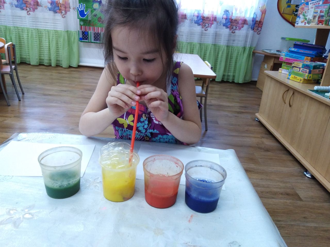 Наталья Александровна өз қызметі үшін балалармен бірге су құтысы, гуашь, сұйық сабын және сабан көмегімен сабын көпіршіктерін өздері жасады. Содан кейін олар сурет сала бастады. Балаларда сабын көпіршіктерін жасау процесі де үлкен қызығушылық тудырды. Балалардың өздері ойнаумен сөйлеу тынысын дамытатынын байқамай, дәлдікті, назар аударуды қажет ететін түрлі материалдарды пайдаланады.