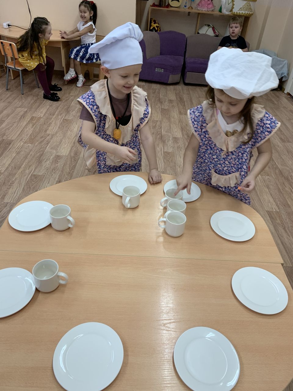Қазіргі кезеңде мектеп жасына дейінгі балаларды еңбекке тәрбиелеу мәселелері мектепке дейінгі тәрбие үшін өзекті болып табылады. Ересек мектеп жасына дейінгі балалардың кезекшілігі біртіндеп еңбек мазмұны, бірлестік формалары, тәуелсіздік және жұмыста өзін-өзі ұйымдастыру талаптары бойынша күрделене түседі. «Сказка» ересек тобындағы балалардың кезекшілігі тәуелсіз, өйткені өткен жылы балалар белгілі бір дағдыларға ие болды. «Сказка» тобының тәрбиешілері кезекшілерге көмекшілері ретінде жүгінеді, олардың іс-әрекеттерін, ынтасын, бастамасын, тапсырмаларды орындай алуын, ұтымды әдістерді қолдануды мақұлдайды.