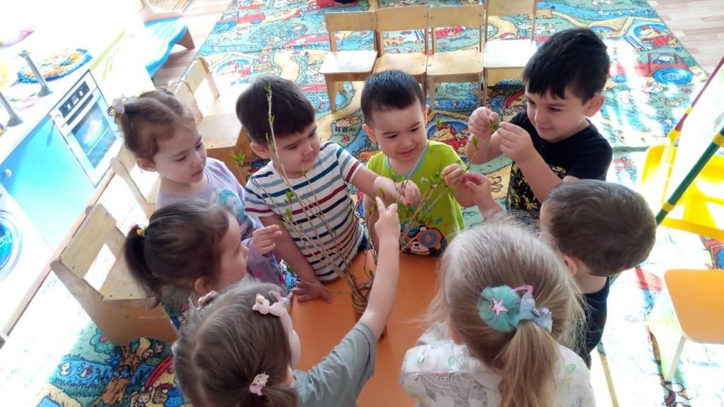 Тәрбиеші Алина Игоревнаның басшылығымен «Капелька» кіші тобының кішкентай із кесушілері балабақшада серуендеу кезінде ағаштарды: терек, қайыңды қарады. Балалармен бірге әр ағашты мұқият қарап, діңгектерге қол тигізіп, түсін (ақтан қара сұрға дейін, қалыңдығы, биіктігі); бұтақтарын (қалың, жұқа, ұзын, қысқа) атады. Жерде теректің бірнеше бұтақтары жатты. Оларды қатты жел сындырған шығар. «Оларға көмектесейік!» тәрбиеші оларға бұтақтарды сауытқа қоюға және қарап тұруды ұсынды. Бұтақтарда жағымды шайырлы хош иіс болды. Топта жылы, ашық, ссауыттағы жылы су, сондықтан терек бұтақтарының бүршіктері ісініп, жапырақтары босатыла бастады. Жабысқақ жас, ашық жасыл жапырақтар пайда болды. «Капелька» кіші тобының балаларына күн сайын бұтақтардың жағдайын байқау өте қызықты болды. Біздің топта көктем тезірек келуі үшін біз балалармен бірге жасыл жапырақтары бар ағаштарды салуды шештік.