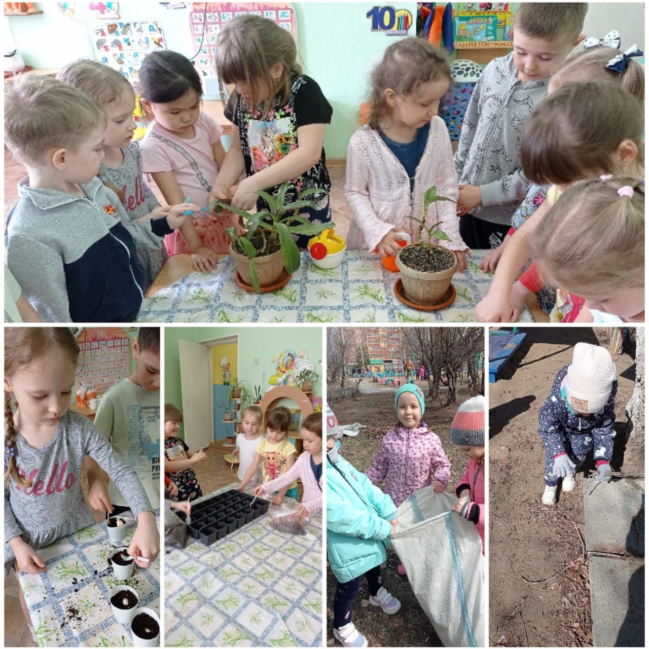 Реализуя проект «Маленькие огородники», мы с детками создали огород на подоконнике, посадили семена цветов, лук и чеснок. Огород наподоконнике в детском саду способствует развитию любознательности и наблюдательности у детей, это помогает лучше познать растительную жизнь. Дети активно участвовали в посадке и последующем уходе за растениями.Выращивая, ухаживая за растениями, ребята наблюдают за тем, какие из них растут быстрее, сравнивают форму и цвет листьев, определяют условия, необходимые для роста и развития растений. Дети научились различать некоторые виды растений, узнали много интересного из жизни растений, исследуя опытным путем условия, необходимые для их роста, приобщились к посильному труду по уходу за рассадой. А также мы вместе с ребятами разработали алгоритм ухода за цветами, исходя из их особенностей. Растения в группе разные - хлорофитум, традесканция и другие, и уход должен быть для каждого свой. Для этого в группе имеется инвентарь – лейки, палочки для рыхления почвы, кисточки и тряпочки для вытирания и сметания пыли с листьев растений.Теперь дети могут самостоятельно, без помощи воспитателей, полить или порыхлить землю в горшочке, протереть листья от пыли, или с помощью распылителя опрыскать растение водой. Все эти действия ребятам знакомы, и они с удовольствием ухаживают за цветами в уголке природы группы. На территории нашего детского сада имеются различные деревья и кустарники, где организуются ежедневные наблюдения за природой, трудовая деятельность.На День Земли, вооружившись подготовленным оборудованием, мы все отправились на борьбу с мусором. Во время уборки я, как воспитатель строго следила за безопасностью детей, все пользовались перчатками.