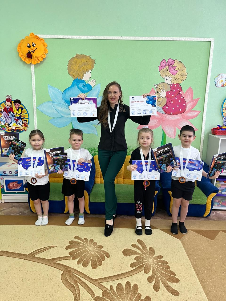 Наши воспитанники Ремхен Виолетта, Брунер Роман, Шукюров Умар и Сагитова Ясмина совместно с педагогом Жаковой Еленой Александровной приняли участие в Международном Фестивале по дошкольной робототехнике «Жас Ғарышкер» в категории «Космогород». Все выполнение соревновательного задания записывалась на видео в режиме реального времени. Оценочными показателями в Фестивале были следующие характеристики: стендовый доклад, конструирование из отдельных или готовых блоков, навыки общения воспитанников во время игры, дизайн и эстетика конструирования, STEAM- подход и использование роботов в проекте. По результатам Фестиваля наша команда «Хранители космоса» заняли 3 место.