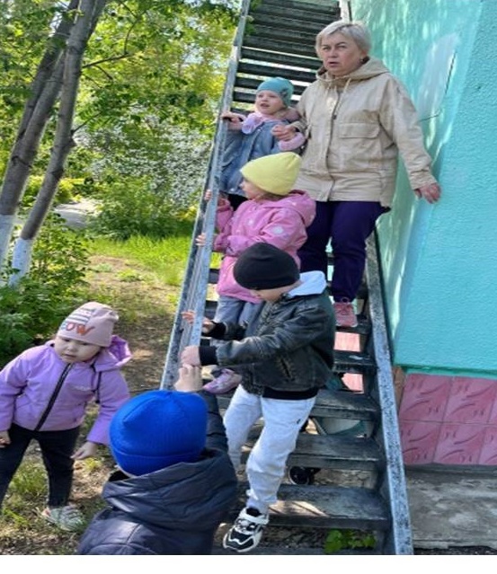 По сигналу речевого оповещения «Внимание всем!» воспитанники и сотрудники 1и 2 этажа были эвакуированы в безопасное место на специально отведенную площадку на улице.